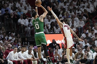 在NBA東區決賽G4的激烈對決中,波士頓塞爾提克隊以一場驚人的表現繼續在客場背水一戰。由於Jayson Tatum的出色發揮,他攻下34分、11籃板和7助攻,帶領全隊六名球員的得分達到雙位數。最終,塞爾提克以116比99擊敗邁阿密熱火隊,成功續命,但仍舊陷入1比3的落後局面。